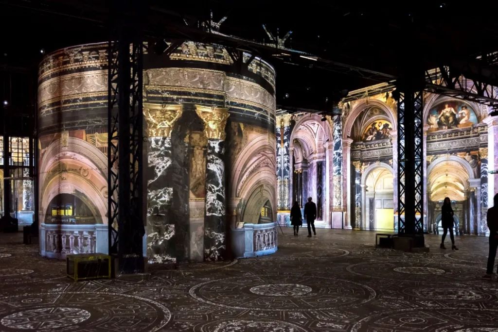 Hall des Lumières數(shù)字技術(shù)打破了現(xiàn)實(shí)世界與虛擬世界的壁壘,將原本只能放在櫥窗里展示的實(shí)物,拉到游客面前,帶給游客更多的沉浸式體驗(yàn)。本文帶你走進(jìn)四家以數(shù)字藝術(shù)為主題的展館,數(shù)字美術(shù)館與普通美術(shù)館相比有什么不同?Culturespaces是法國一家管理文化遺跡、博物館和藝術(shù)中心的私人機(jī)構(gòu)。依托于對市場的敏銳捕捉,Culturespaces很早便開始專注于沉浸式的藝術(shù)體驗(yàn),打造藝術(shù)大師的IP數(shù)字展覽,迄今已經(jīng)在全球擁有多個永久的數(shù)字藝術(shù)展館。位于巴黎的Atelier des Lumières,自2018年開業(yè)以來,就已經(jīng)吸引了超過300萬游客體驗(yàn)文森特·梵高、克勞德·莫奈、古斯塔夫·克里姆特和薩爾瓦多·達(dá)利等藝術(shù)家數(shù)字化的藝術(shù)作品。